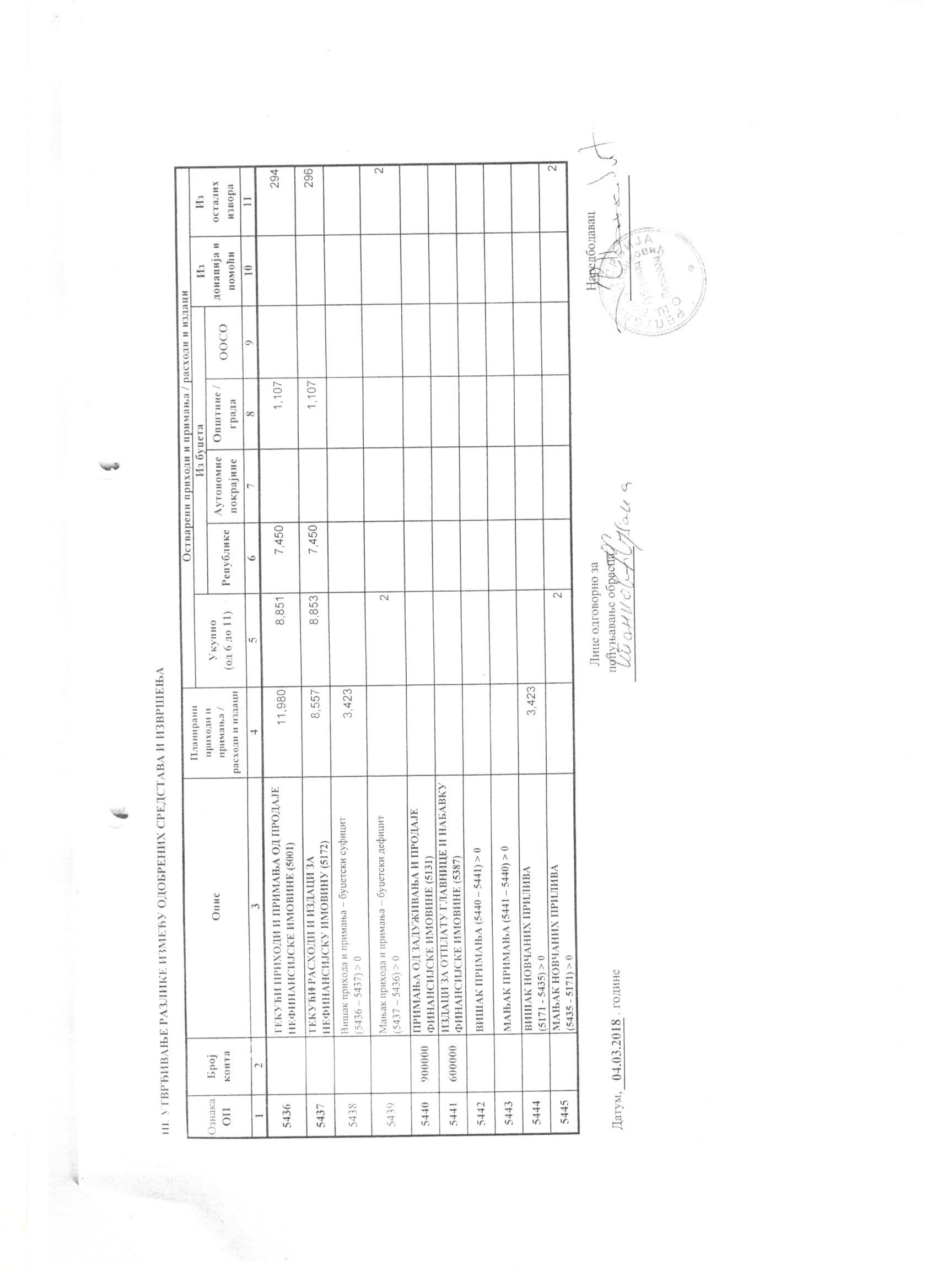 Последња страна- Извршење буџета за за период 01.01.-31.03.2018. |